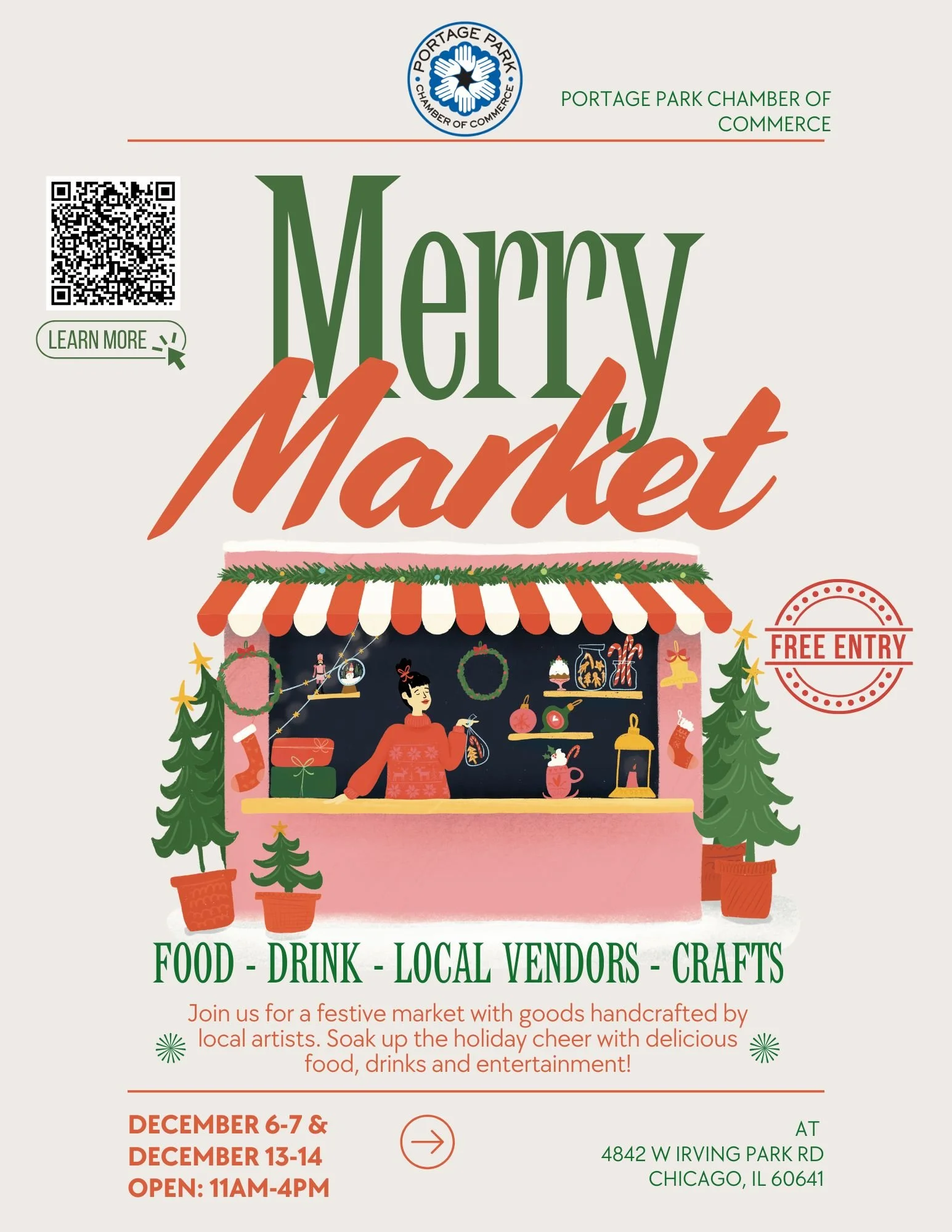 Shop local, sip something warm, explore unique gifts, and soak in all the festive holiday magic at the Portage Park Merry Market!